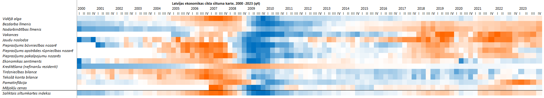 Reizi ceturksnī Fiskālās disciplīnas padome, līdzīgi kā citas Eiropas Savienības dalībvalstu neatkarīgās fiskālās iestādes, sagatavo ekonomikas cikla siltuma karti.